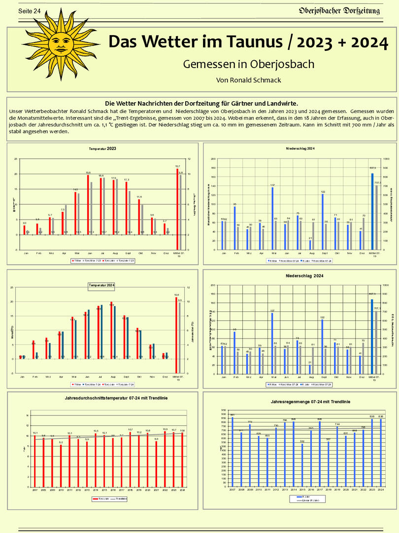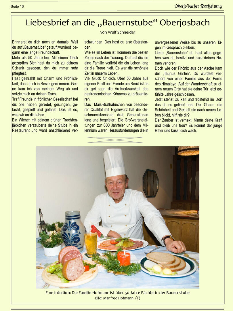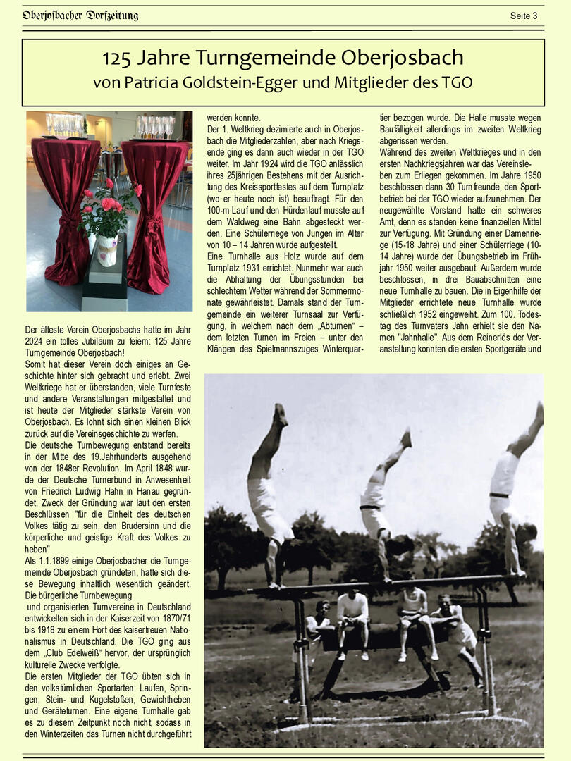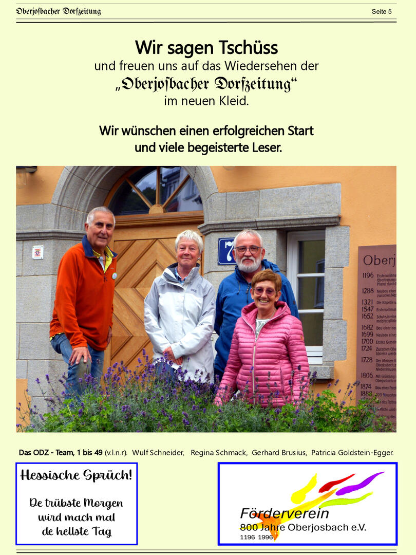 Im November 1994 erschien die erste Ausgabe der Oberjosbacher Dorfzeitung – ursprünglich, um die Oberjosbacher auf das bevorstehende 800-jährige Ortsjubiläum einzustimmen und zu motivieren. Anfangs wurde die Zeitschrift viermal im Jahr veröffentlicht. Doch aufgrund des hohen Arbeitsaufwands und der damals beträchtlichen Druckkosten musste die Erscheinungsfrequenz im Laufe der Jahre reduziert werden – zunächst auf zwei, später auf eine Ausgabe pro Jahr.