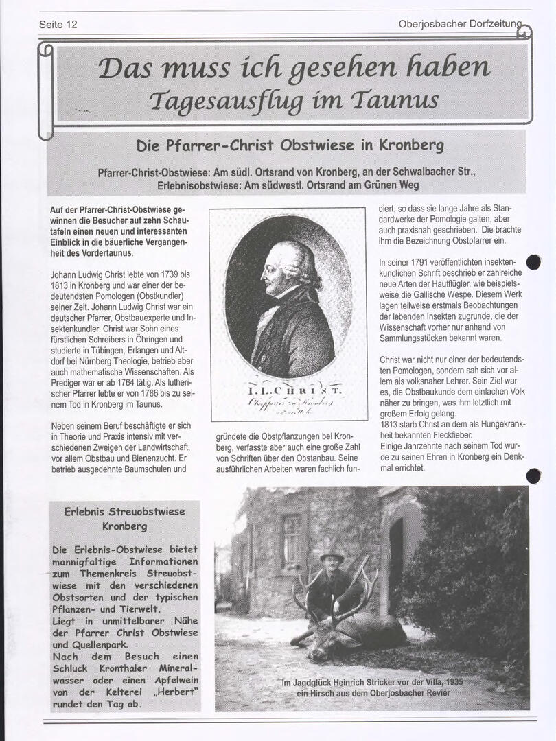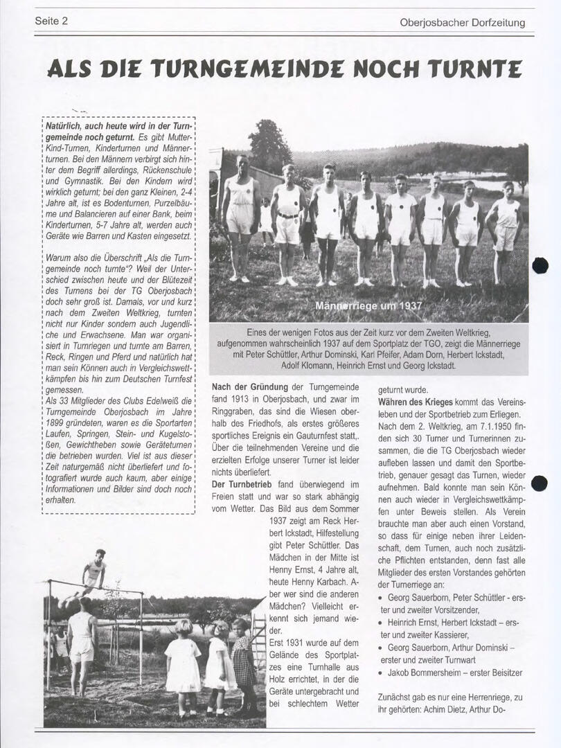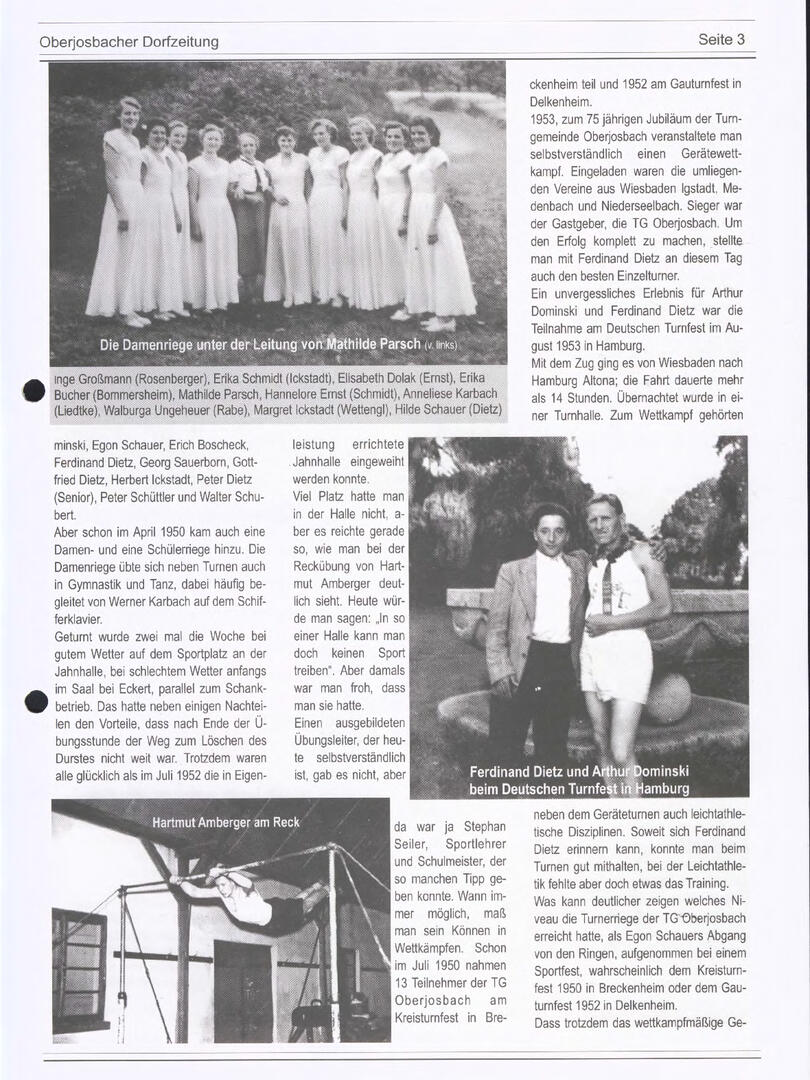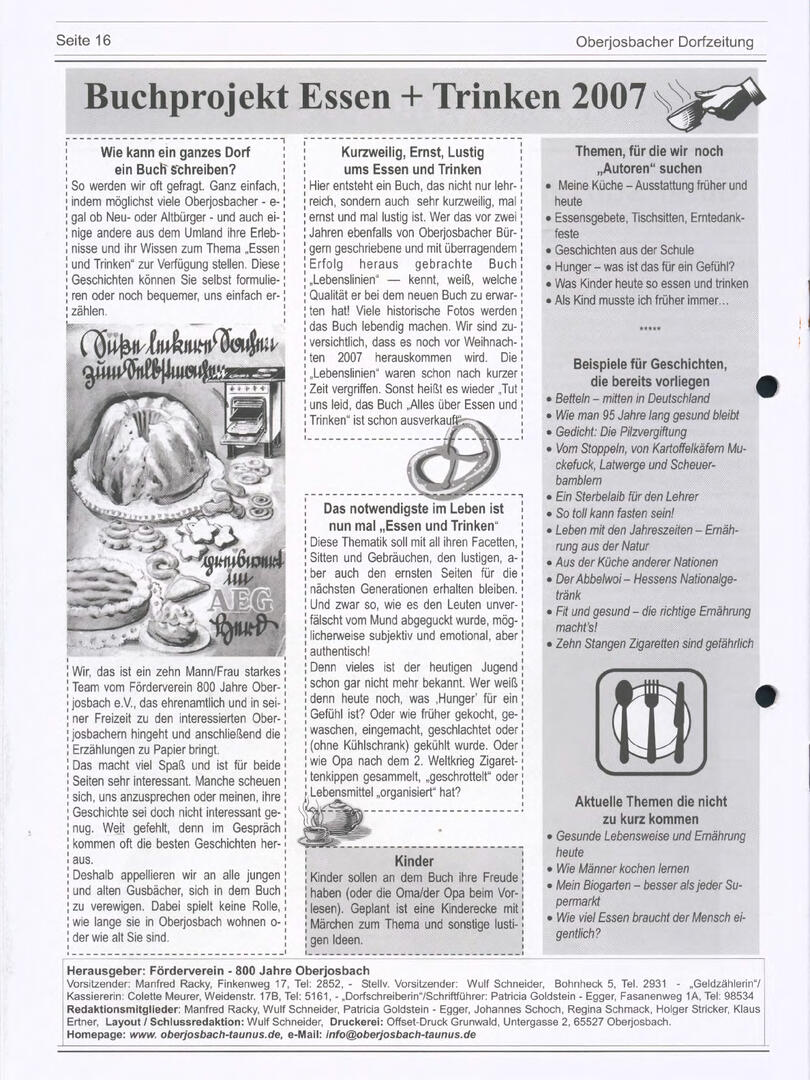 Im November 1994 erschien die erste Ausgabe der Oberjosbacher Dorfzeitung – ursprünglich, um die Oberjosbacher auf das bevorstehende 800-jährige Ortsjubiläum einzustimmen und zu motivieren. Anfangs wurde die Zeitschrift viermal im Jahr veröffentlicht. Doch aufgrund des hohen Arbeitsaufwands und der damals beträchtlichen Druckkosten musste die Erscheinungsfrequenz im Laufe der Jahre reduziert werden – zunächst auf zwei, später auf eine Ausgabe pro Jahr.