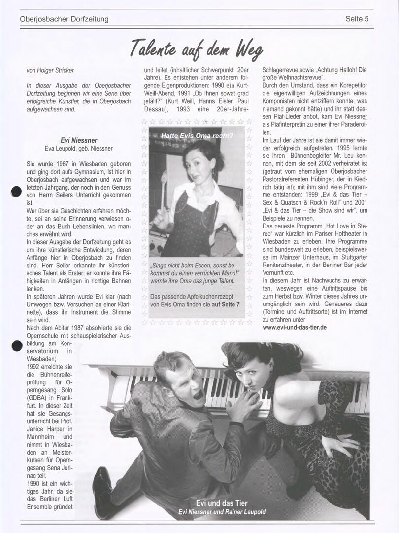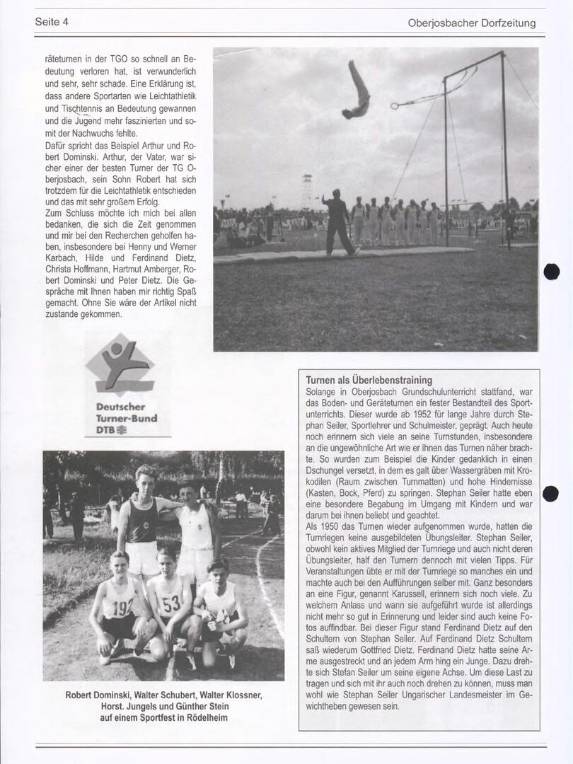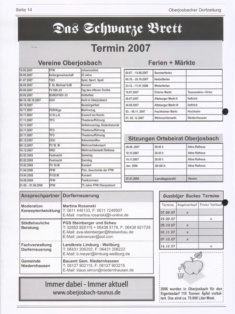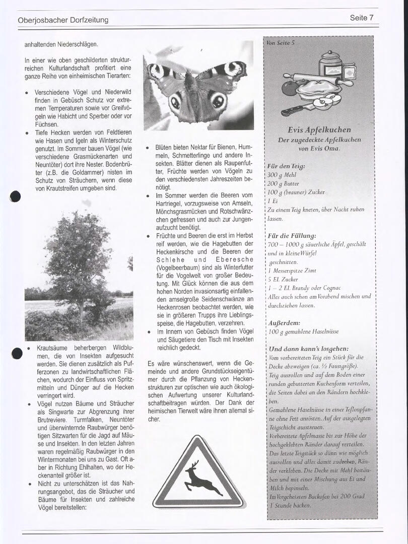 Im November 1994 erschien die erste Ausgabe der Oberjosbacher Dorfzeitung – ursprünglich, um die Oberjosbacher auf das bevorstehende 800-jährige Ortsjubiläum einzustimmen und zu motivieren. Anfangs wurde die Zeitschrift viermal im Jahr veröffentlicht. Doch aufgrund des hohen Arbeitsaufwands und der damals beträchtlichen Druckkosten musste die Erscheinungsfrequenz im Laufe der Jahre reduziert werden – zunächst auf zwei, später auf eine Ausgabe pro Jahr.