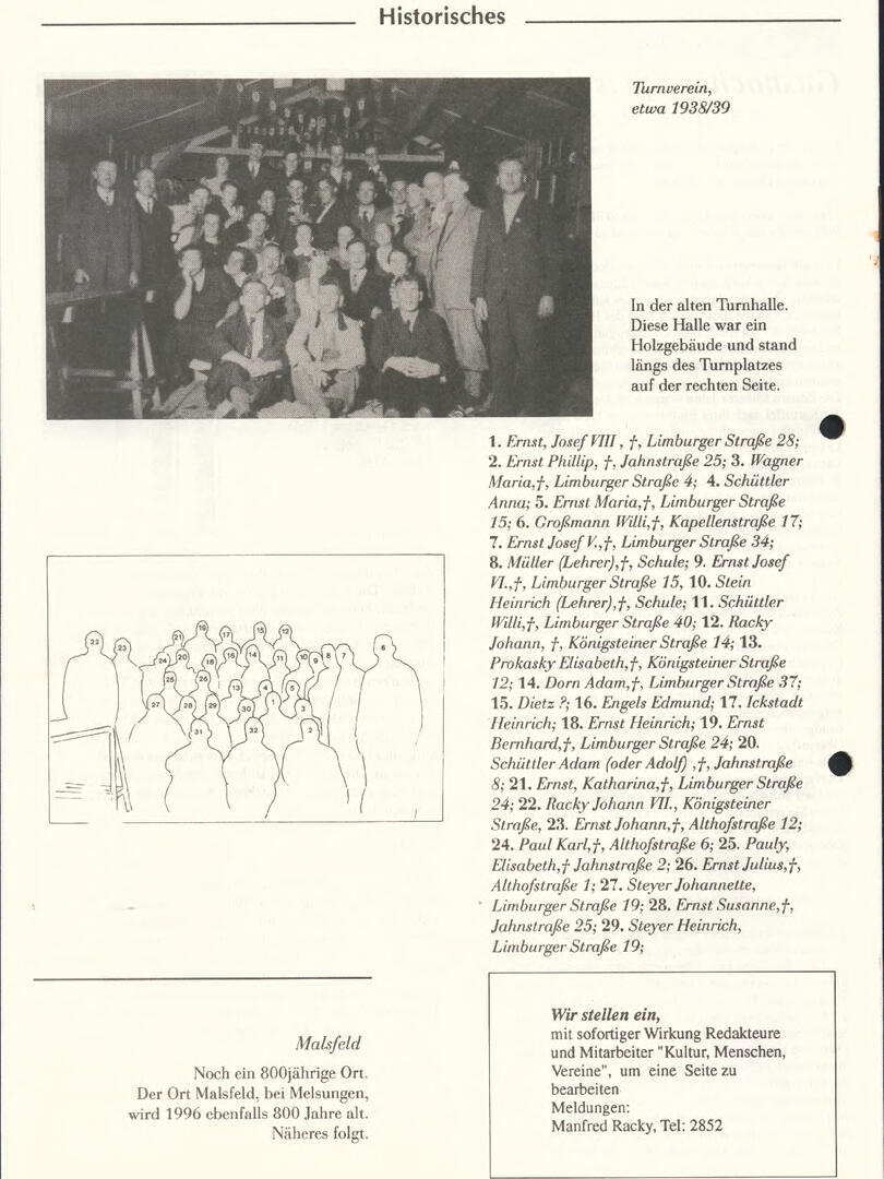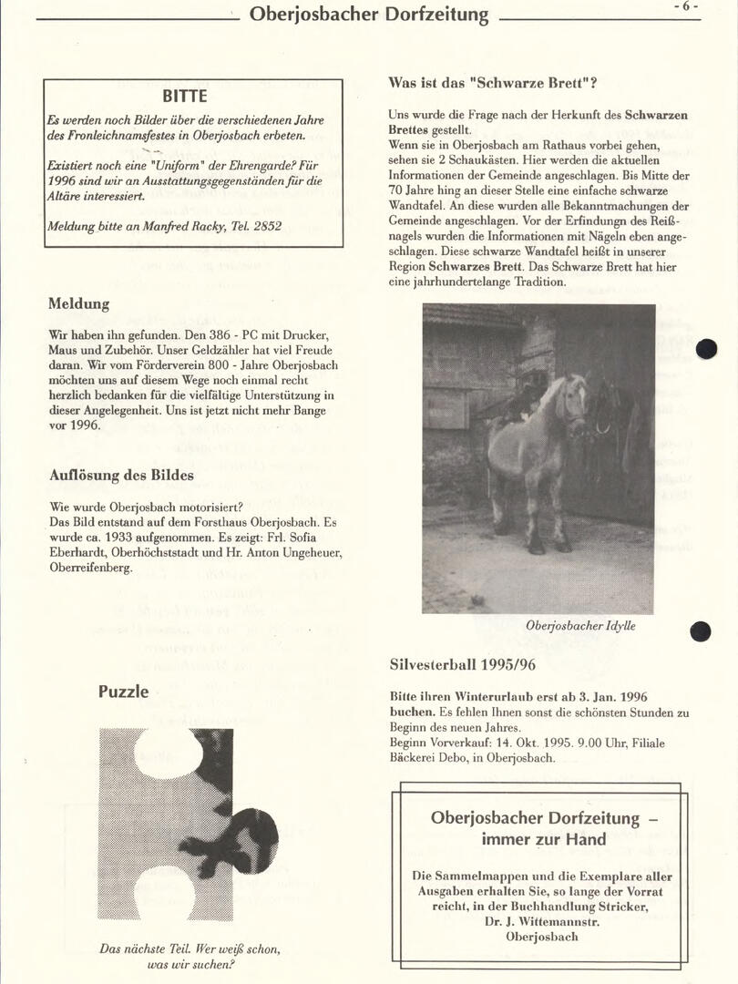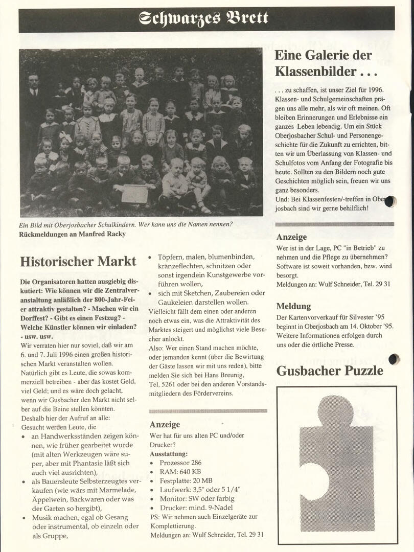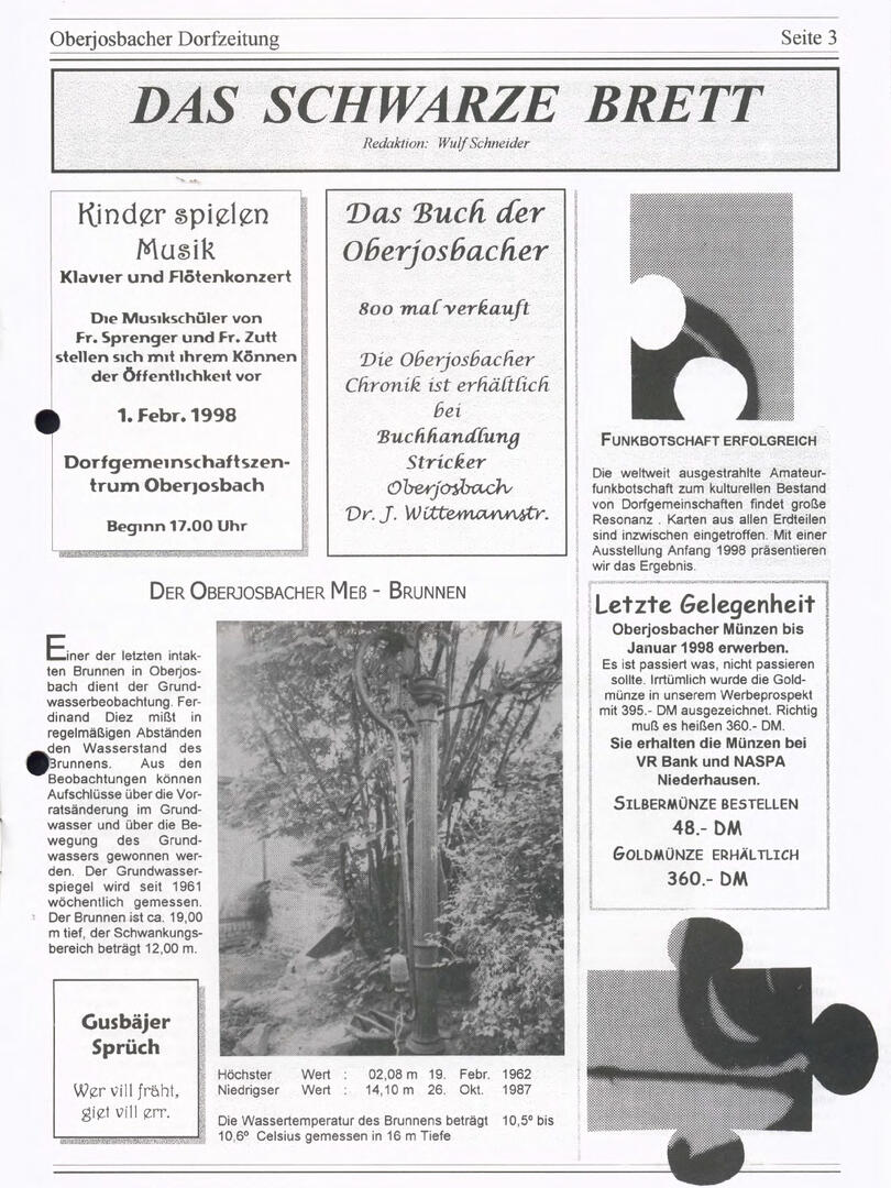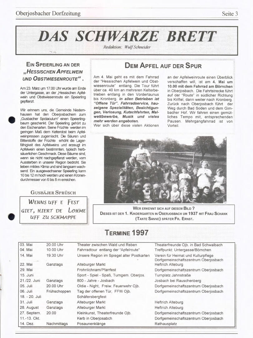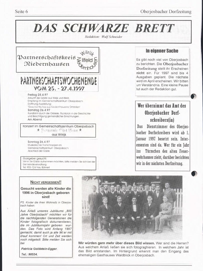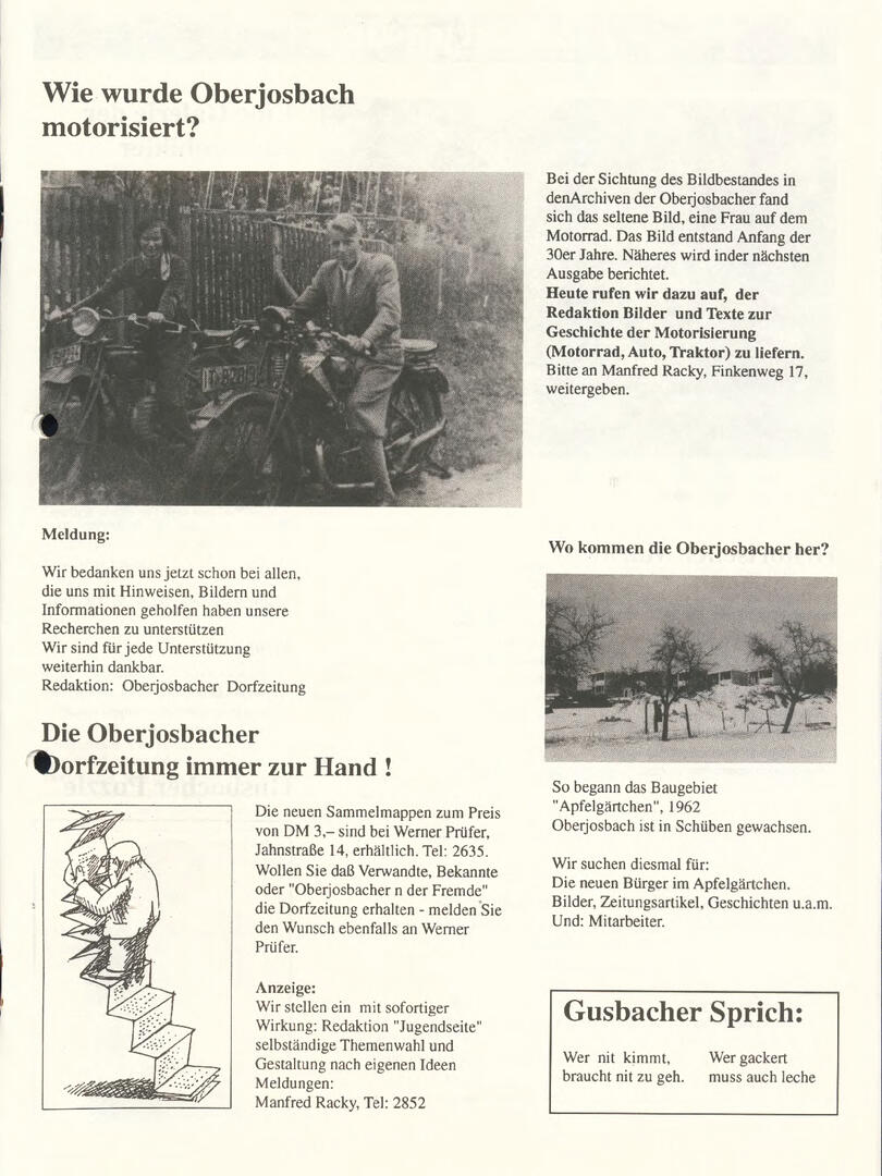 Weiter unten lassen sich bereits viele ältere Dorfzeitungs-Ausgaben als PDF herunterladen oder direkt lesen. Allerdings sind einige der frühen Ausgaben noch nicht digitalisiert – wer sich hier fachkundig einbringen möchte, ist herzlich willkommen!
